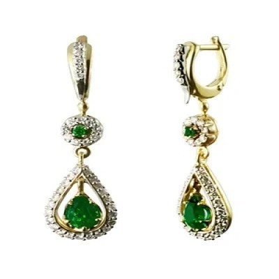 первая страница > Ювелирные изделия > G.st. ЮВЕЛИРНЫЙ ЗАВОД ЗОЛОТОЙ СТАНДАРТ Серьги из желтого золота с натуральными изумрудами и бриллиан
